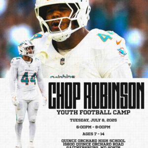 COME OUT AND HONE YOUR SKILLS WITH NFL STAR CHOP ROBINSON Date and time Tuesday, July 8 · 6 – 8pm EDT Location Quince Orchard High School…